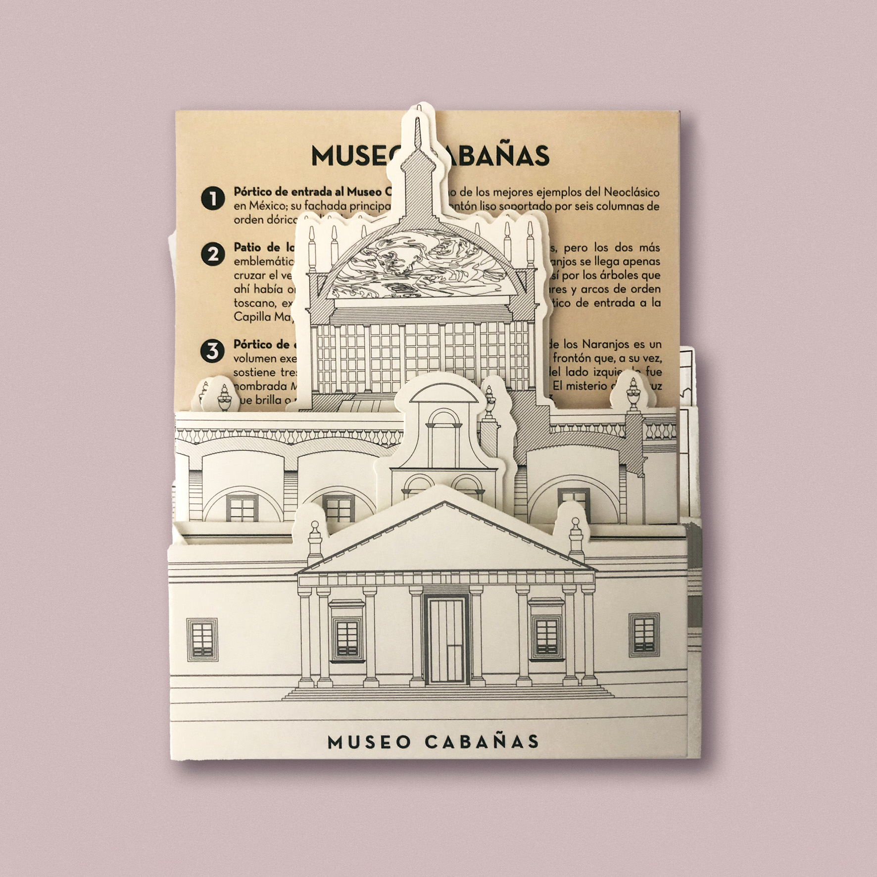 Skyline con los alzados de fachada y cortes del edificio Museo Cabañas con una breve explicación de cada uno.